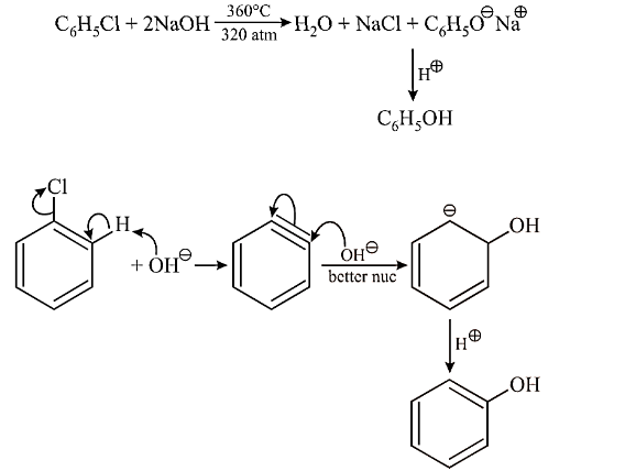 - From Haloarenes (Dow's Process): Involves heating chlorobenzene with aqueous NaOH at high temperature and pressure.